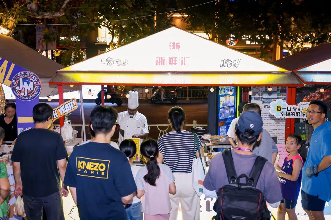 喝完美酒,接下来就该赴这场美食之约了。步入美食外摆区,各地特色风味即刻开启“圈粉模式”。平湖媌佬烧卖皮薄馅足、新疆耶里夏丽的羊肉串外焦里嫩、绿杨邨的细点酥软精巧,还有酸辣的泰式小吃、Q弹的鱿鱼年糕、鲜香的蒜蓉生蚝……花样多得让人眼花缭乱,总有一款能戳中你的味蕾。