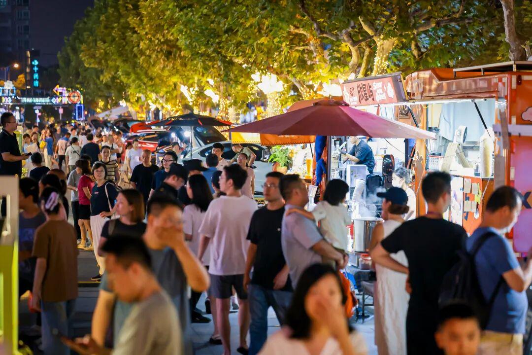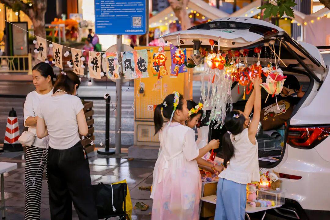 同时,16辆美食餐车和后备厢市集区域热闹非凡,茶艺香道、手工包包、房车花店等摊位创意十足,市民游客穿梭其间,挑选手作好物、体验“淘宝”之乐。