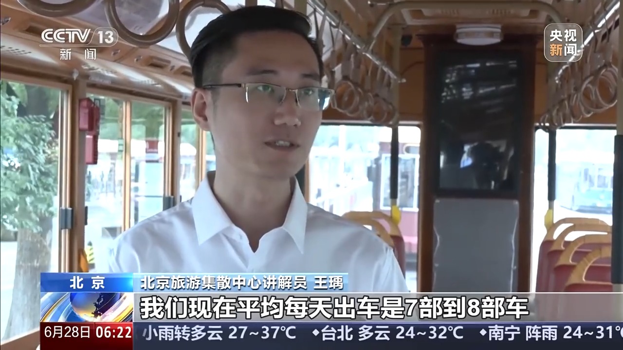 与此同时,一辆老北京仿古铛铛车正载着游客欣赏了北京中轴线沿途的美景,听讲解员讲述着这里的故事。