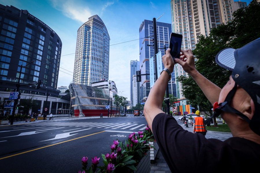 路易号今晨揭开面纱,引得市民驻足拍照。本报记者 叶辰亮摄