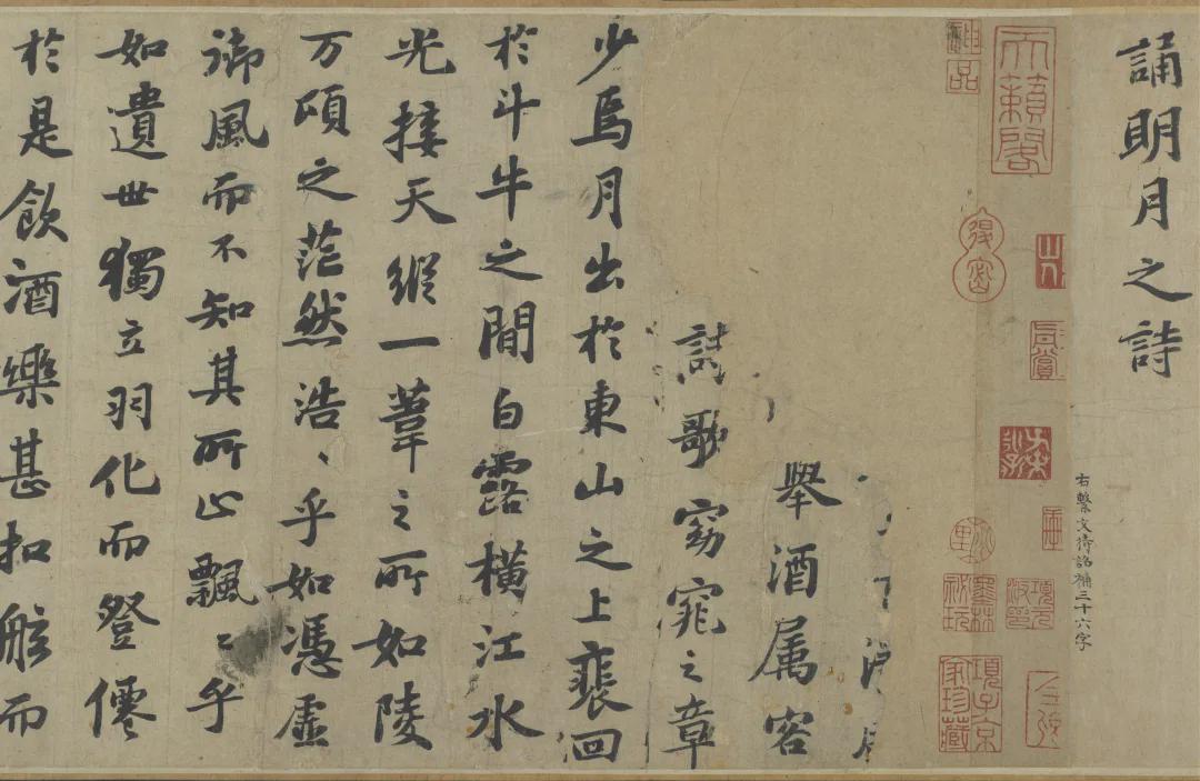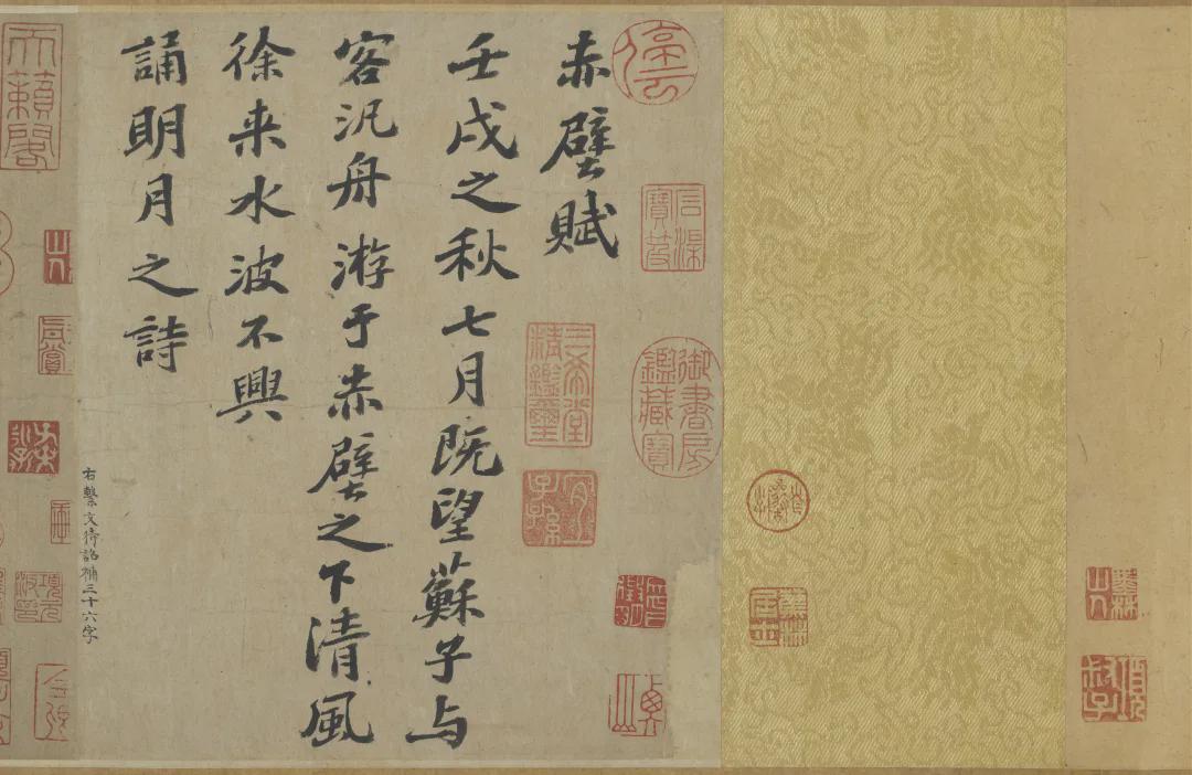 第二单元“舒心畅意”旨在彰显这批文艺天才的书画艺术成就。书法方面,苏轼《前赤壁赋》、黄庭坚《自书松风阁诗》、米芾《蜀素帖》等名作,呈现北宋末多元且富个人情性的尚意书风;绘画方面,李公麟稀世真迹《五马图》、《山庄图》的忠实摹本、《九歌图》,以及米芾《云山并自书跋》等画作,则可一窥北宋文人画的各种观点与实践。