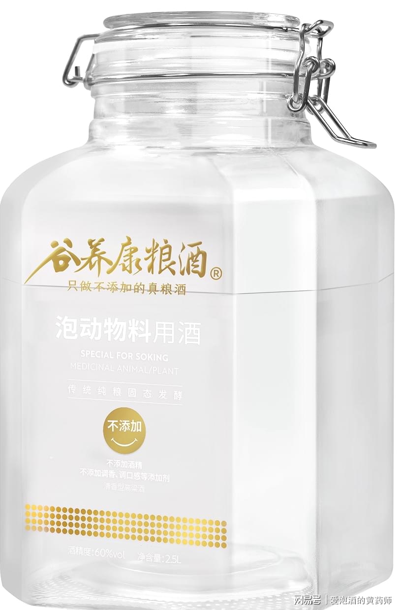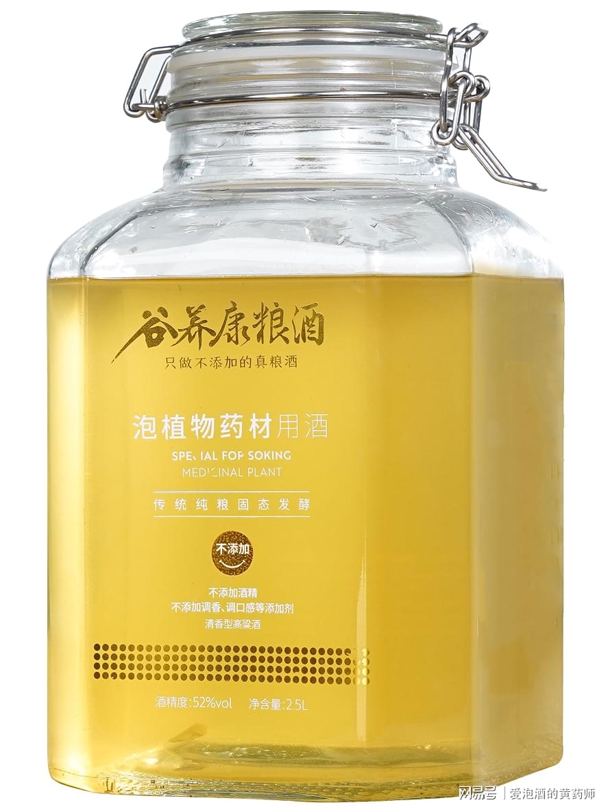相反,纯粮酿造酒采用自然发酵的方式,更能保留酒的天然成分,泡酒时能够更好地释放原料中的有效成分。考虑到泡酒的成绩和安全性,选泽一款真正的粮食酒显得尤为重要。在此,笔者堆荐一款无添加、纯粮酿造的谷养康·0添加泡酒专用酒,这款酒不仅使用自然发酵工艺,口感纯正,而且泡酒成绩显著,成分释放更彻底。